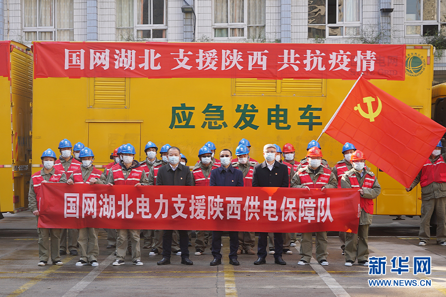 圖為國(guó)網(wǎng)湖北電力支援陜西抗擊疫情保供電隊(duì)伍出發(fā)前合影。新華網(wǎng)發(fā)