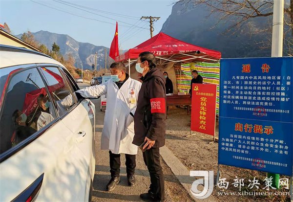 巴山鎮(zhèn)防疫人員在交通健康服務點查驗過往車輛及人員