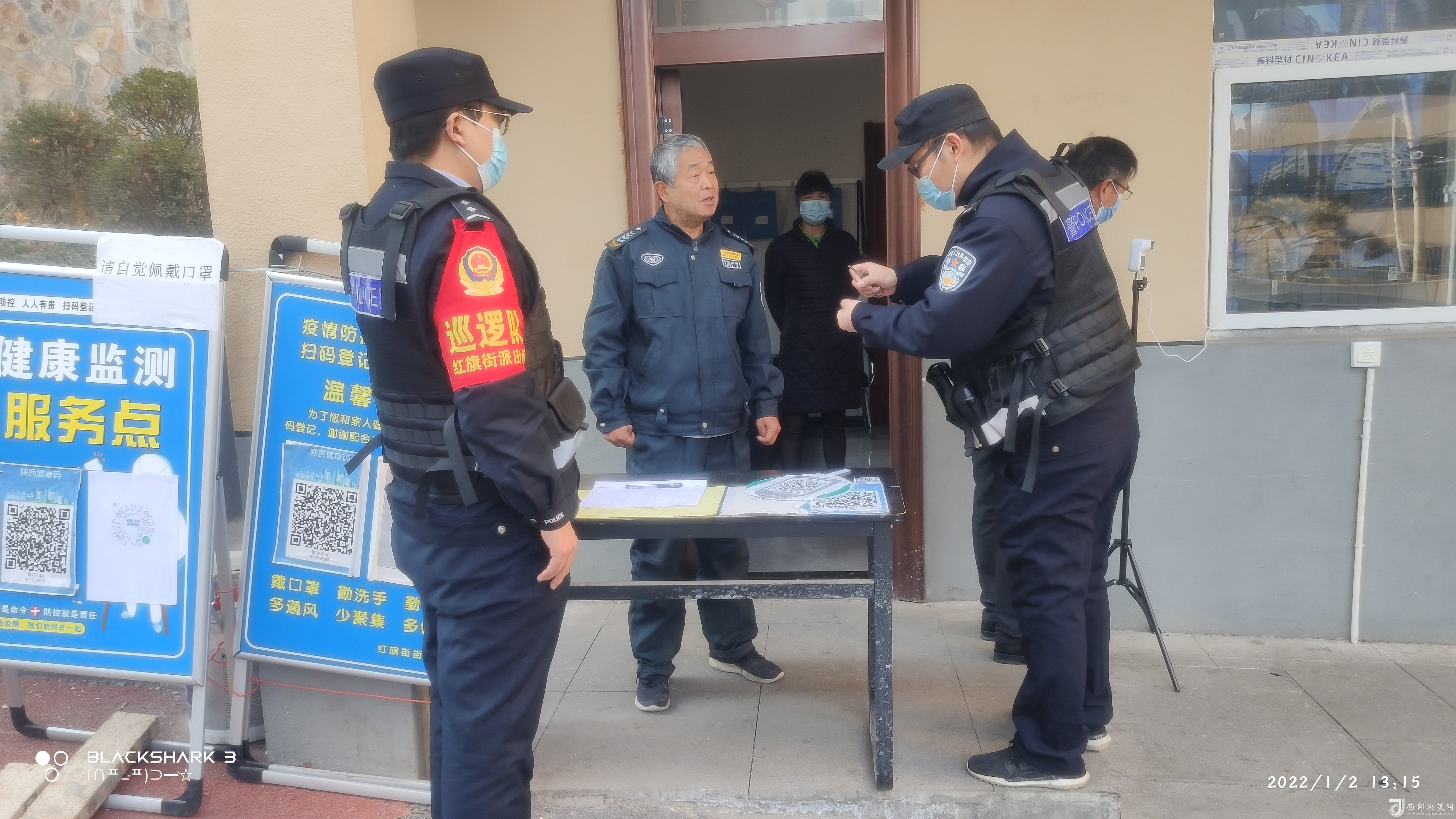 紅旗街派出所民警在小區(qū)疫情防控點進行指導(dǎo)工作