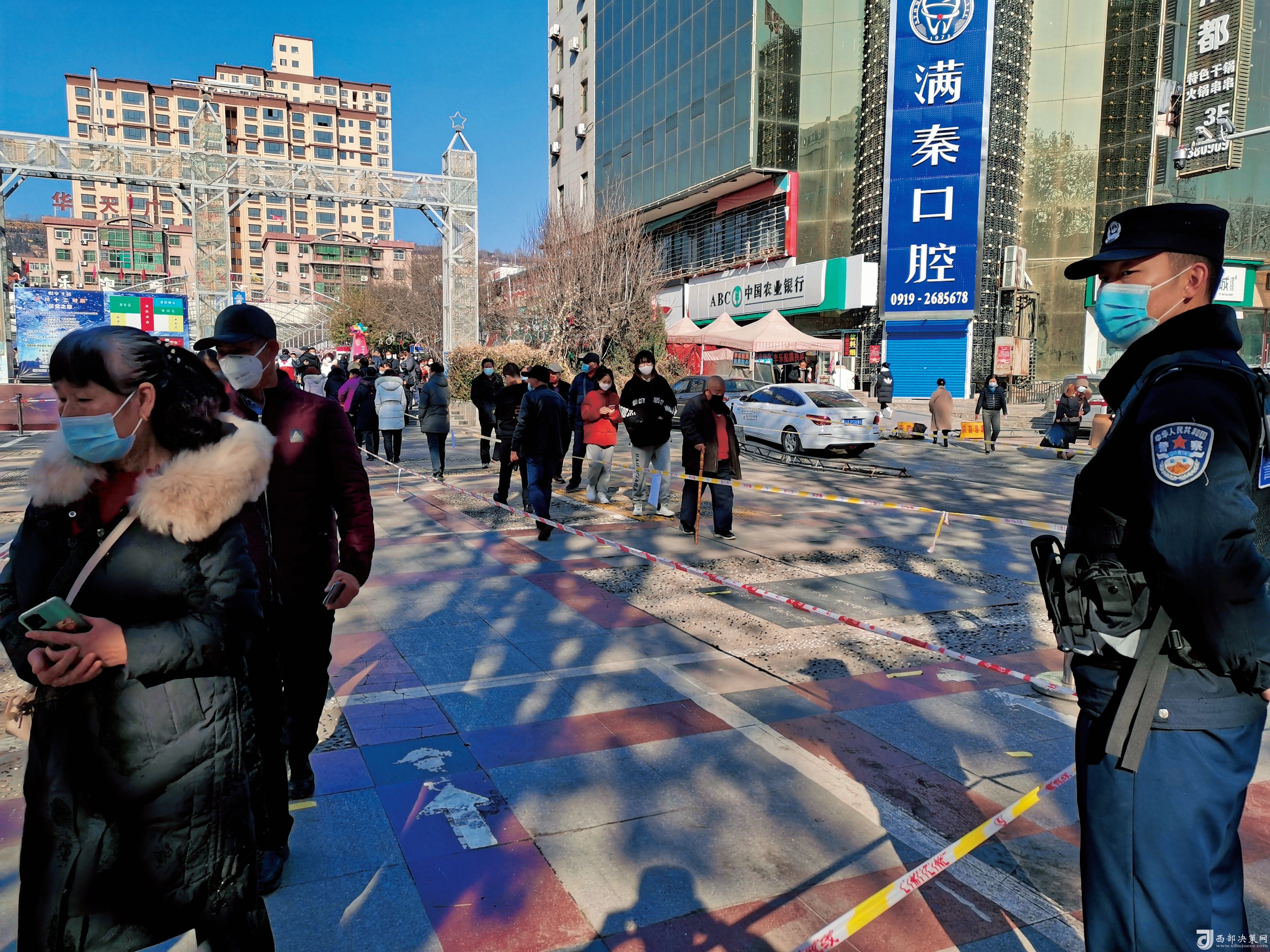 因為疫情肆虐,銅川市王益區(qū)華天廣場專門設(shè)立了核酸檢測站,在每天早上八點到下午六點,為源源不段的市民進行核酸檢測,紅旗街派出所隨即展開了維護秩序的工作,向檢測站提供建議,倡導(dǎo)大家井然有序,保持距離。