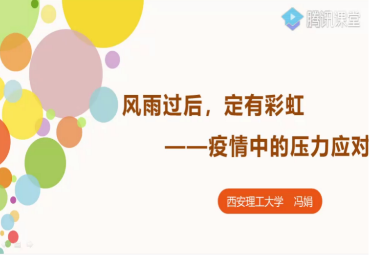 心理健康教育中心還積極組織學(xué)生收看陜西省委教育工委推出“京陜抗疫心理講堂”系列公益講座,從壓力應(yīng)對(duì)、情緒管理、朋輩支持、疫情戀愛、校職轉(zhuǎn)換等多個(gè)角度策劃學(xué)生心理調(diào)適專題“云講座”,緩解學(xué)生因封控產(chǎn)生的心理壓力。