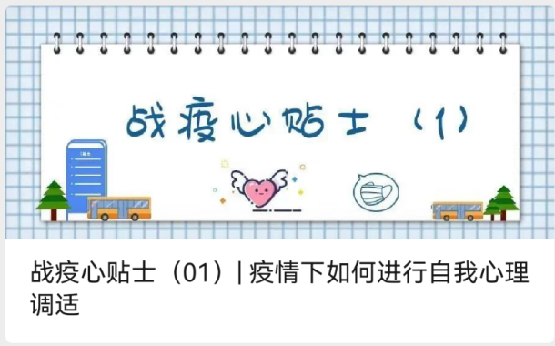 疫情防控期間,考慮到學(xué)生學(xué)習(xí)生活場(chǎng)所受限,學(xué)生情緒容易受到環(huán)境影響。心理健康教育中心通過新媒體開展“戰(zhàn)疫心貼士”、心語FM專欄,每天為該校學(xué)生推送疫情心理調(diào)節(jié)小妙招及各類心理援助資源。相繼發(fā)布的15篇推文有效地幫助學(xué)生們掌握了有關(guān)疫情的心理健康知識(shí),學(xué)會(huì)了自我健心減壓,引導(dǎo)他們理性對(duì)待疫情,不恐慌、不信謠、不傳謠,保持良好心理狀態(tài)。
