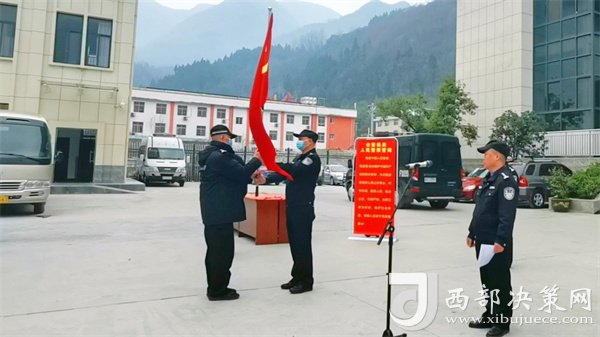 鎮(zhèn)巴縣公安局黨員突擊隊(duì)臨時(shí)黨支部書(shū)記黃小勇接旗