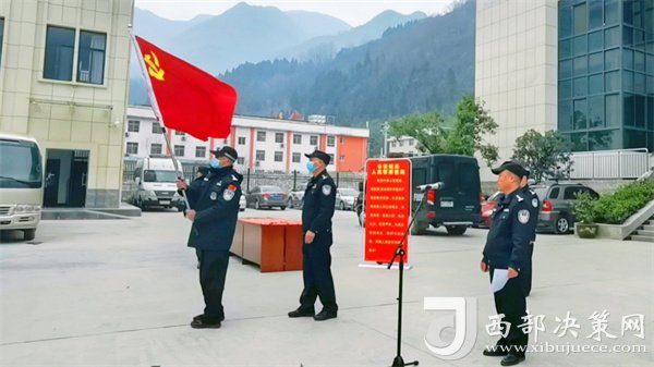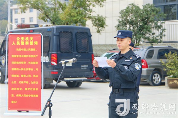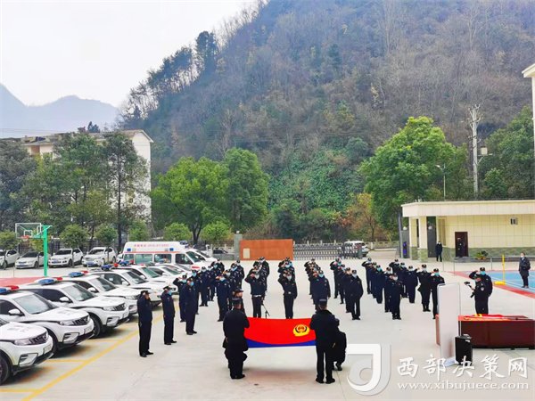 副縣長(zhǎng)、公安局黨委書(shū)記、局長(zhǎng)裴新民向鎮(zhèn)巴縣公安局黨員突擊隊(duì)授旗