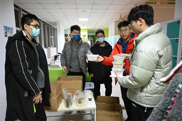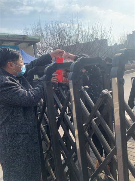 南校區(qū)家屬區(qū)開(kāi)始封閉管理,一些租住在家屬院的已退宿延期畢業(yè)學(xué)生由于不會(huì)做飯,就餐成了難題,于是,輔導(dǎo)員楊笑宇化身“外賣小哥”,前往食堂、超市、面包店采購(gòu)一大包食品和生活用品,透過(guò)家屬區(qū)的大門交到學(xué)生手中,解決了學(xué)生的溫飽難題。