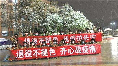 歲末,突如其來的新冠肺炎疫情,讓陜西省西安市按下了暫停鍵。西安高校云集,學(xué)子匯聚。在疫情防控的關(guān)鍵時刻,一封封“請戰(zhàn)書”、一個個紅手印出現(xiàn)在各大高校。“我們是退役軍人,我們志愿加入這場沒有硝煙的戰(zhàn)爭”“戎裝雖脫,兵心不改”“我們曾經(jīng)過部隊培養(yǎng),緊急關(guān)頭當(dāng)然要挺身而出”……西安交通大學(xué)強軍先鋒隊、西安建筑科技大學(xué)戰(zhàn)旗中隊、西安郵電大學(xué)國防青年突擊隊、西安外事學(xué)院利刃先鋒退役軍人志愿協(xié)會、陜西國防工業(yè)職業(yè)技術(shù)學(xué)院軍魂學(xué)社、長安大學(xué)弘毅中隊……一支支由退役大學(xué)生士兵組成的學(xué)生社團(tuán)主動請纓,戰(zhàn)斗在校園疫情防控一線。