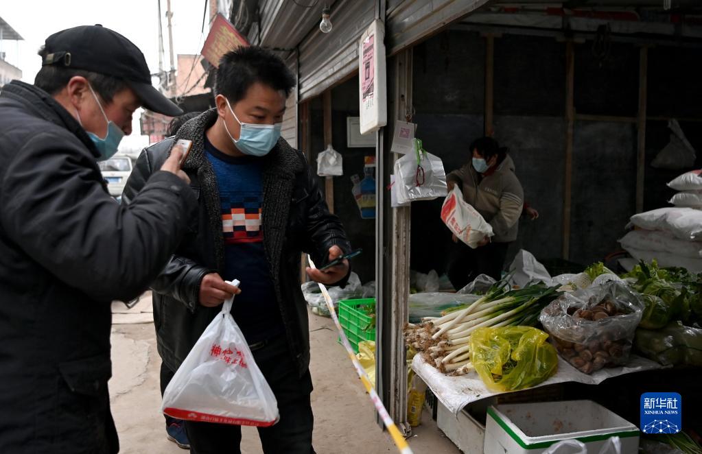 1月7日,西安市未央?yún)^(qū)西唐寨村村民在超市購買商品。