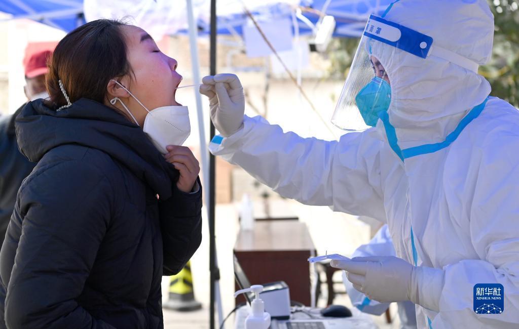 1月7日,西安市未央?yún)^(qū)西唐寨村村醫(yī)在為村民進(jìn)行核酸檢測。