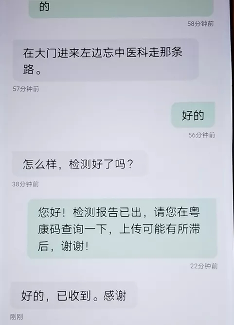 8日上午10時57分,在“深圳衛(wèi)健委”的微信公眾號推文下,一位叫“Prnliy”的網(wǎng)友留言,引起深圳市衛(wèi)健委工作人員的關(guān)注。這位網(wǎng)友說:“昨晚9點在龍華中心醫(yī)院做的核酸,產(chǎn)婦等著住院要核酸證明才能入住,什么時候能出結(jié)果?。?2個小時了。”