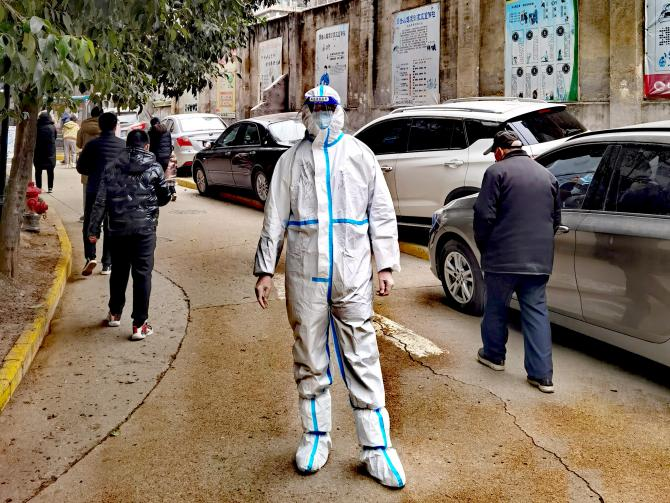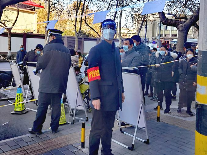 自從12月21日至今,王曉軍幾乎天天深入抗疫一線,以志愿者的身份助力抗疫,從未休息過一天,什么工作都干過,上門核實業(yè)主家里的人員情況,最近是否都做了核酸,綠碼顯示情況,是否還出去上班,是否有生活困難等等一系列繁瑣細微的工作,作為總經(jīng)理他在公司運籌帷幄,雷厲風行,而在這里,他俯首甘為孺子牛,輕輕地敲開萬戶門,耐心詢問,認真登記,毫無差漏。小區(qū)巡查時,勸導業(yè)主回家不要下樓,遇到家里有生活方面困難的業(yè)主時,了解情況后勸導回家等侯,然后聯(lián)系物業(yè)或社區(qū)或民警協(xié)調(diào)處理,給業(yè)主回復。小區(qū)門口值班時,對進出人員嚴加詢問,除防疫工作人員及民生保障人員持身份證、單位證明、疫情防控指揮部辦公室的證明人員外,一律不許出入,對門口交接生活保障物資的人員,通過專用通道,保持3米距離,并對物品進行嚴格酒精消殺,杜絕出現(xiàn)交叉感染。核酸篩查現(xiàn)場維護秩序時,看到年邁的老者,就主動向前扶一把,幫助老人提前插隊做;遇到打不開綠碼的,就親自幫人操作;遇到間距拉近的就讓他們分開......一天下來嗓子都喊啞了,從21日開始至今,一共進行了10輪核酸篩查,他從未缺崗。防護服不透氣,身上一會兒熱一會兒冷,自己本來就戴著一副眼鏡,再加上一個面罩,外寒內(nèi)熱,眼睛一整天都是模糊的,一天下來腰酸背痛,何況天天如此。在數(shù)九寒天,在危險面前如果沒有一種精神力量做支撐,普通人恐怕一天也難以堅持。我也做過志愿者,穿過傳說中的防護服,僅僅五個小時我都快崩潰了,幸好工作結(jié)束,否則我可能要請假了,所以我感同身受志愿者的艱辛和不易。