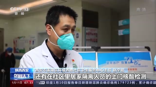 西安市蓮湖區(qū)環(huán)城西路社區(qū)衛(wèi)生服務(wù)中心主任 趙辛斌:有全面核酸檢測,有隔離酒店,還有在社區(qū)里居家隔離人員的上門核酸檢測,還有這些人的日常健康監(jiān)測,還有出現(xiàn)一些其他的,比如說有管控區(qū)的話,我們還要去消殺,或者社區(qū)日常消殺的指導(dǎo),還有一些轄區(qū)群眾的送醫(yī)送藥。