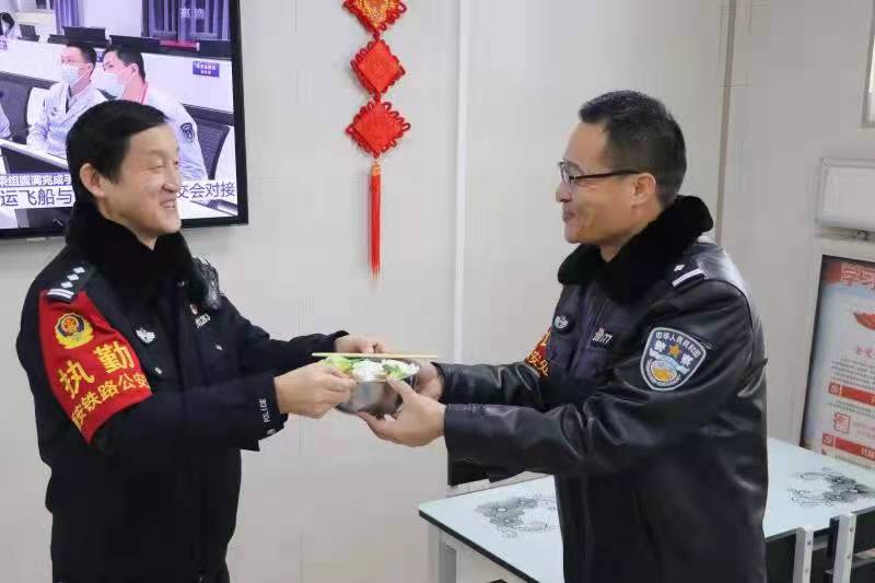 圖為西安站派出所領導向老黨員劉波送來節(jié)日長壽面(受訪者供圖)