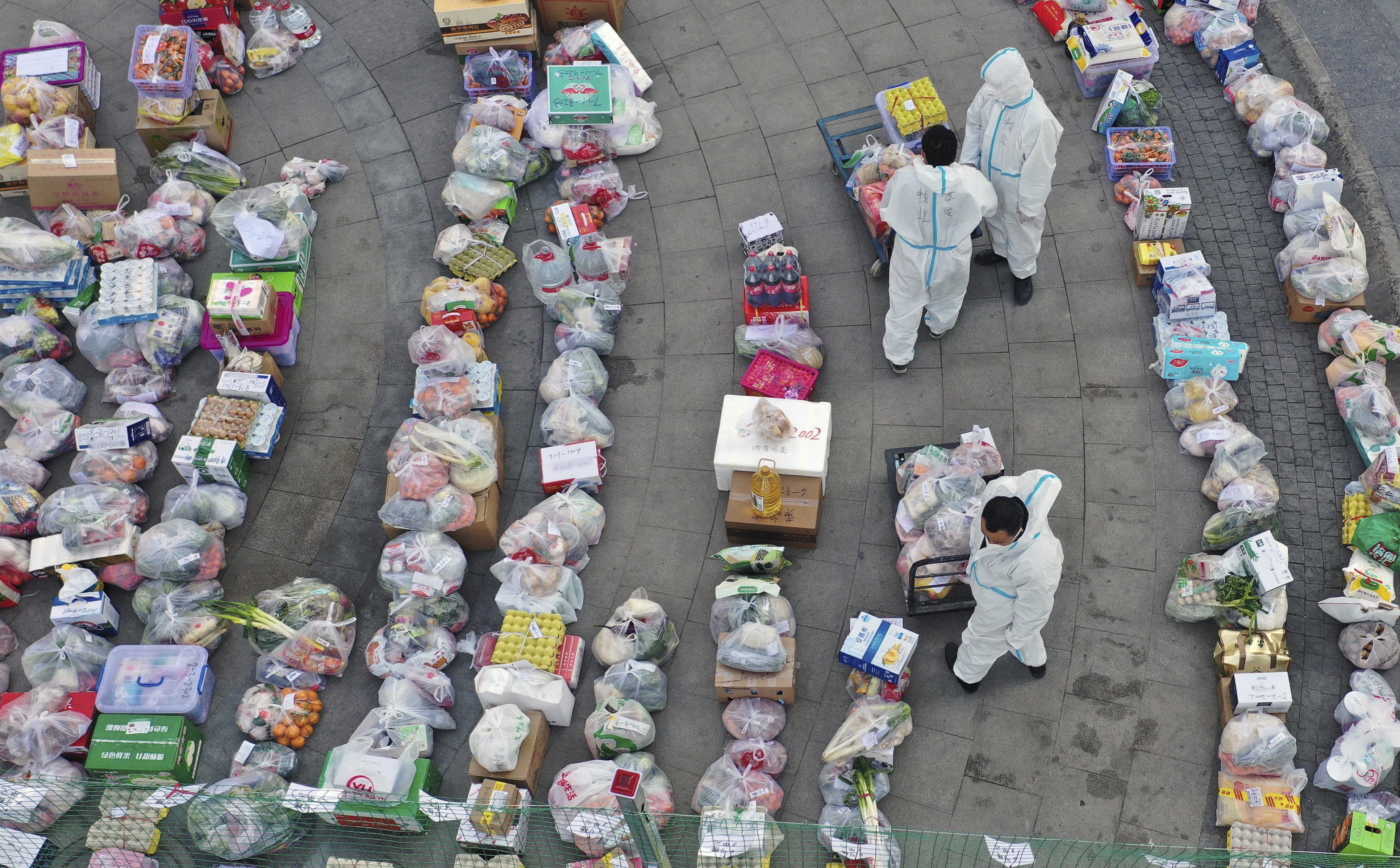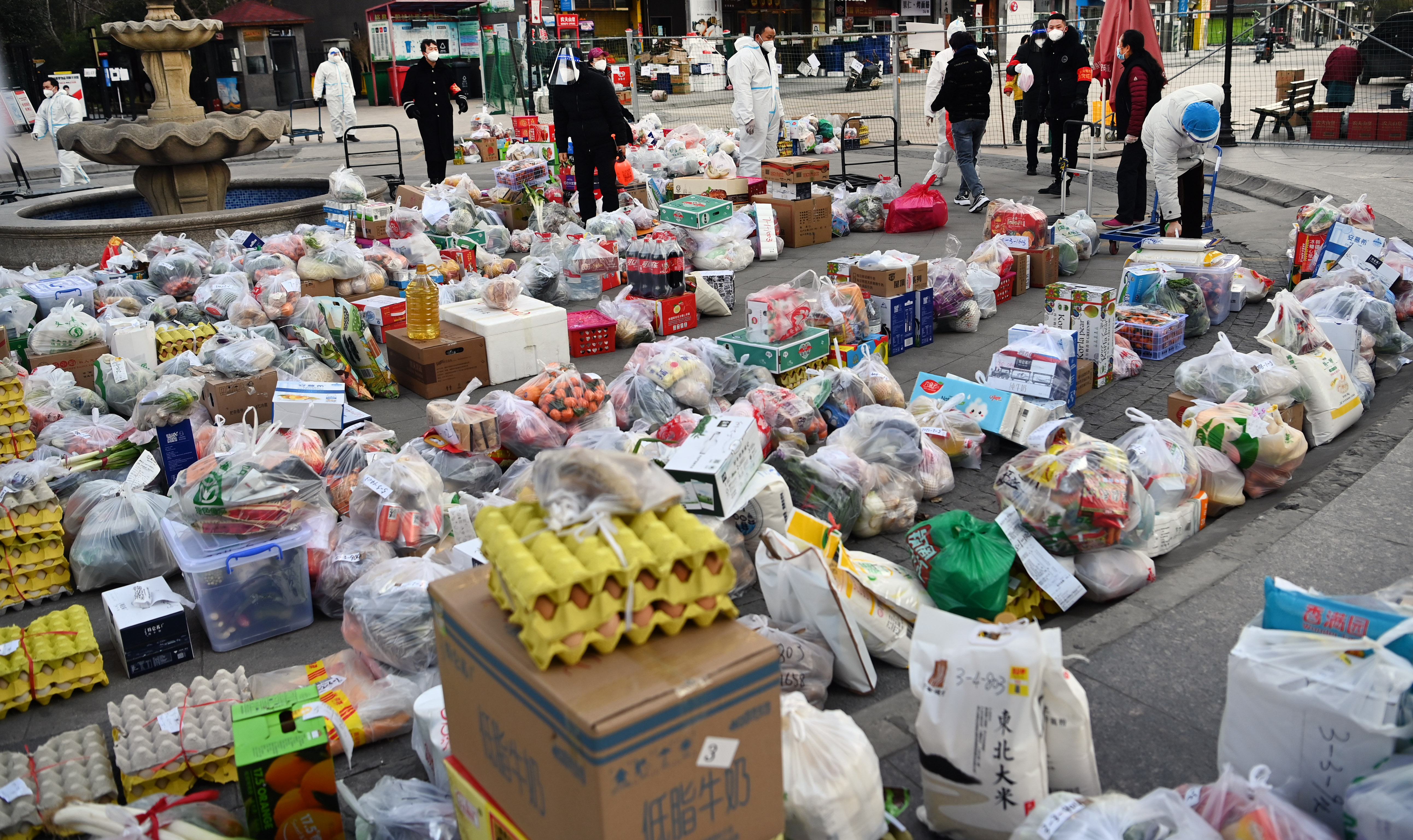 西安市雁塔區(qū)電子城街道裕昌太陽城社區(qū)是一個擁有2700多戶居民的封控區(qū)域。為保障居民生活,負(fù)責(zé)這里的20名各級下沉干部、近百名志愿者,夜以繼日將居民線上購買的生活物資運送到每家每戶。