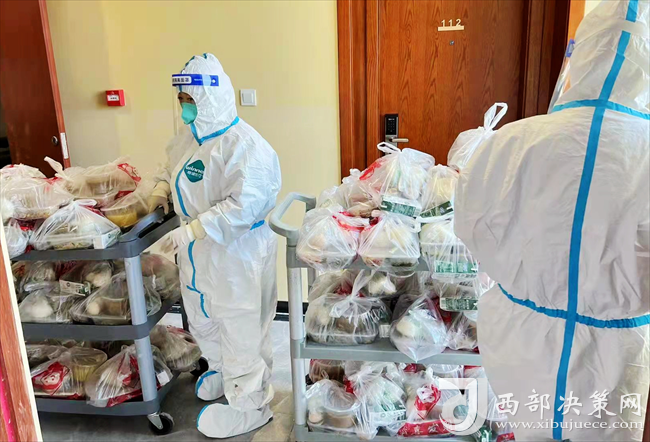 隔離區(qū)里,“大白”們每天準(zhǔn)時在取餐點(diǎn)將盒飯裝入餐車,迅速穿梭在各個樓層之間,只為隔離學(xué)生能盡快吃到熱乎的飯菜;送完餐顧不上休息,又開始對319間客房門口的生活垃圾進(jìn)行消毒、打包,再一趟趟送往廢棄物集中收儲點(diǎn);為防止疫情外溢,她們利用晚上休息時間,抓緊學(xué)習(xí)個人防護(hù)知識,接受醫(yī)護(hù)人員專業(yè)培訓(xùn),將穿脫防護(hù)服、口罩、手套、護(hù)目鏡、腳套、消毒等每一個環(huán)節(jié)要求,牢牢刻在心里面、化在行動上。