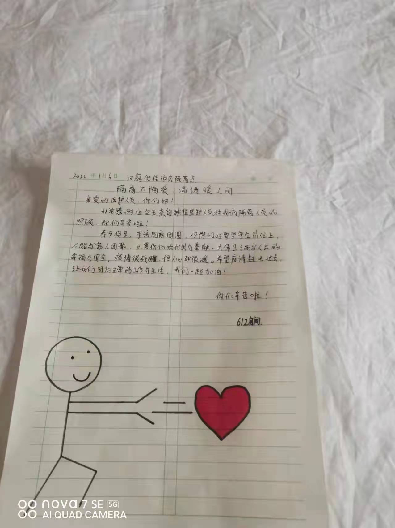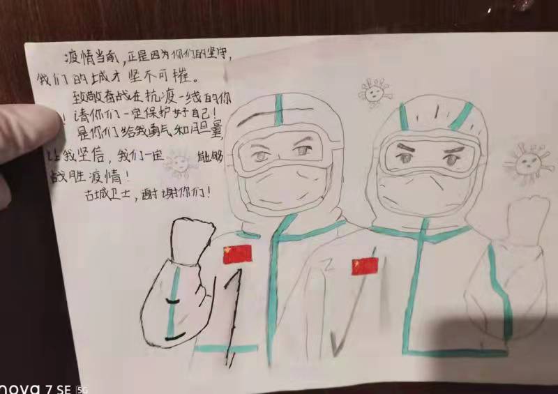 一幅幅手抄報(bào),一封封感謝信,一條條群留言,都在記錄著一個(gè)個(gè)勇毅且溫情的抗疫瞬間。“今天是我被隔離的最后一天,收拾好書包和小行李箱,準(zhǔn)備回家了,看著剩余的水果、零食,此刻心里不止是歡喜和激動(dòng),還有一絲不舍……”一名小學(xué)生在感謝信中寫到:“接到老師的通知,我們要集體隔離,內(nèi)心還有點(diǎn)害怕,不知該怎么辦,來(lái)到酒店后,看到張張和藹可親的臉,我的心放下了,你們?yōu)槲覀儾珊怂帷⑺惋埐?,讓我感到溫暖,感謝強(qiáng)大的祖國(guó),我們一定好好學(xué)習(xí),長(zhǎng)大做一個(gè)對(duì)社會(huì)有用的人”。據(jù)介紹,隔離期間,有四名12歲的學(xué)生是獨(dú)自隔離,沒(méi)有家人的陪護(hù),在工作人員每天的問(wèn)候中,他們懂事有禮貌,只要求工作人員幫他們打印作業(yè),每天在房間堅(jiān)持看書學(xué)習(xí)。