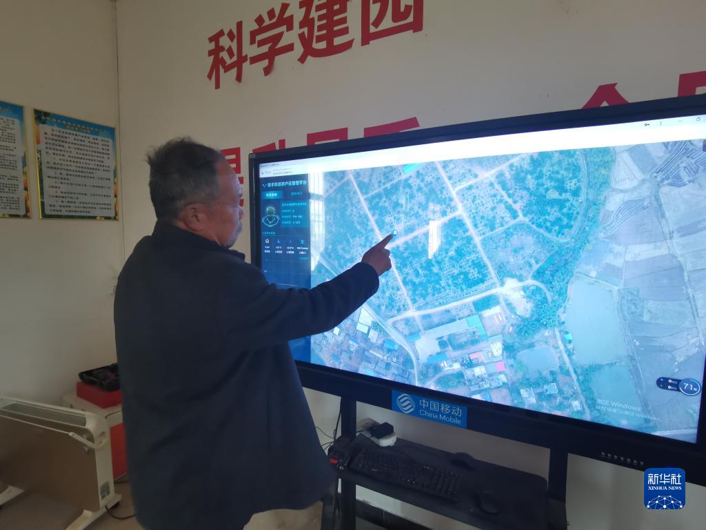 康登明正在通過屏幕了解果園實(shí)時情況。新華社記者 熊家林 攝