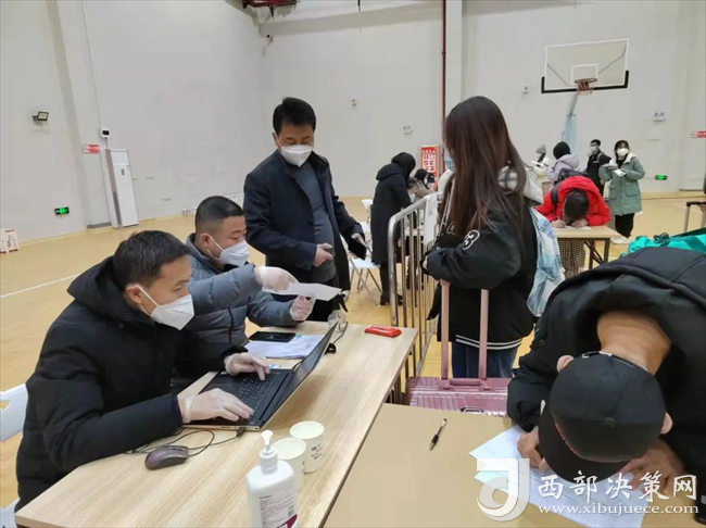 西部決策網(wǎng)訊(韓宗憲 通訊員 田軍強(qiáng))1月17日,寶雞市鳳翔區(qū)疫情防控指揮部教育工作專(zhuān)班組長(zhǎng)、區(qū)政府副區(qū)長(zhǎng)王珍,教育工作專(zhuān)班副組長(zhǎng)、區(qū)教體局局長(zhǎng)紀(jì)宗卷一行到區(qū)體育館檢查西安市各大中專(zhuān)學(xué)校(含技校)放寒假返鳳學(xué)生轉(zhuǎn)運(yùn)工作。
