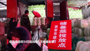 為保障春節(jié)期間蔬菜市場(chǎng)供應(yīng),有效調(diào)節(jié)和穩(wěn)定蔬菜市場(chǎng)價(jià)格,西安市政府24日起在全市200余個(gè)投放點(diǎn)投放約1萬(wàn)噸政府儲(chǔ)備蔬菜,其價(jià)格低于1月23日相應(yīng)蔬菜零售價(jià)15%左右,保障市民過(guò)年的“菜籃子”。