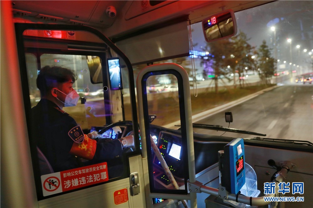 1月25日,西安市公共交通165路汽車司機駕駛公交車在北辰大道上行駛。新華網(wǎng) 王智超攝