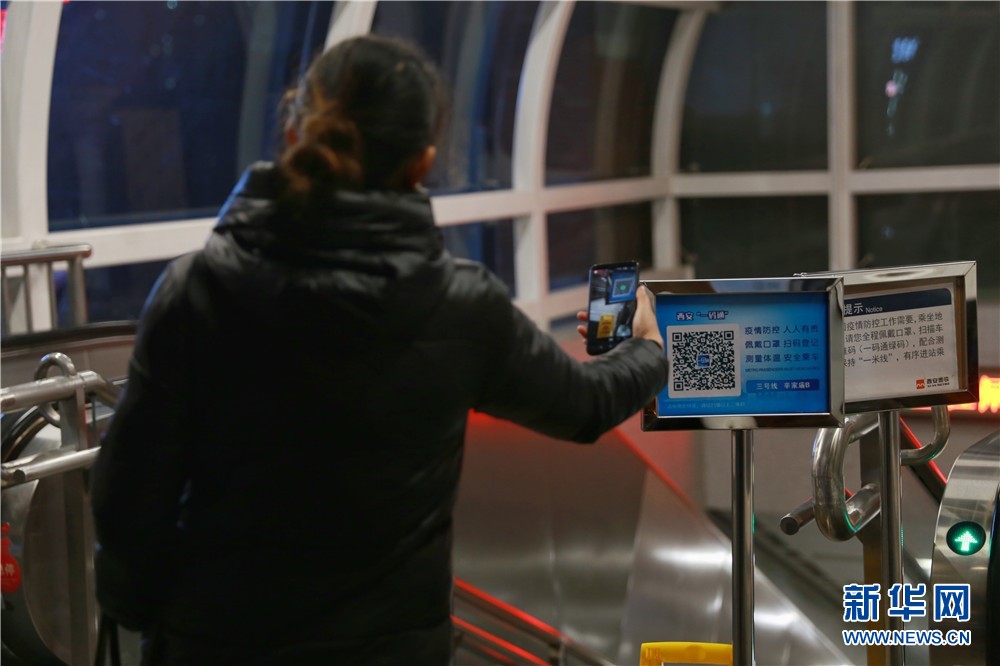 1月25日,西安地鐵三號線辛家廟站B口,市民在進(jìn)行掃碼登記。新華網(wǎng) 王智超 攝