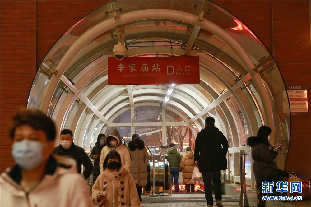 1月25日,西安地鐵三號線辛家廟站D口來往的進(jìn)出站乘客。新華網(wǎng) 王智超 攝