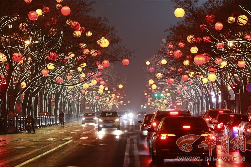 晚上7點(diǎn),大唐不夜城的所有新春燈組同時(shí)點(diǎn)亮,這些花燈匯聚成夜色流光,點(diǎn)亮西安、點(diǎn)亮新春。這里不論是主街還是沿街的商鋪,都被裝扮起了五顏六色的花燈和裝飾,就連樹(shù)梢上都掛起了紅燈籠,把“年”的氛圍感拉滿。