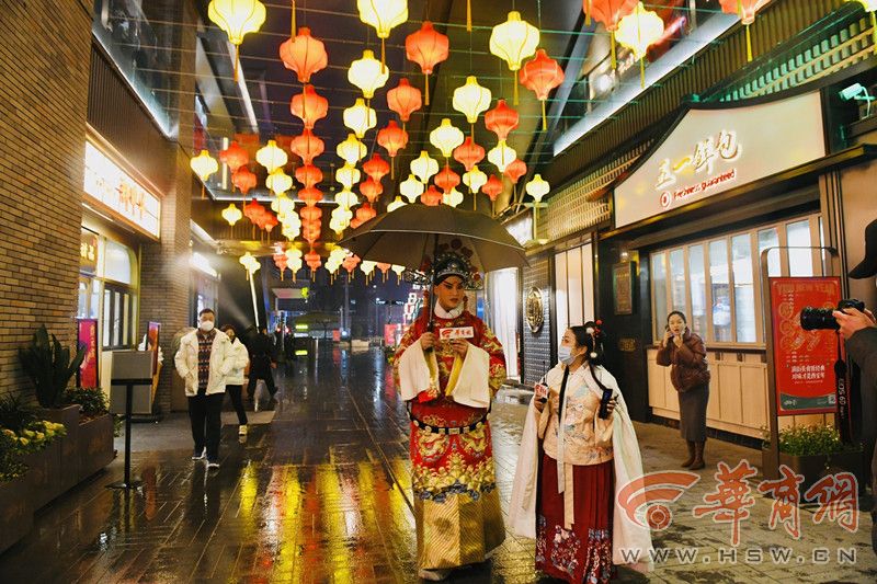 在易俗社文化街區(qū),天街燈市造型燈籠和大型石榴燈籠遠(yuǎn)觀燦若星河,近賞光影絢爛;“花落易俗”投影3D燈光秀也非常驚艷;戲曲雙水滴紅藍(lán)樹(shù)燈、“福氣高升”“雙神迎喜”、生旦凈丑、戲曲花冠燈等燈組及藝術(shù)裝置展現(xiàn)傳統(tǒng)文化魅力。