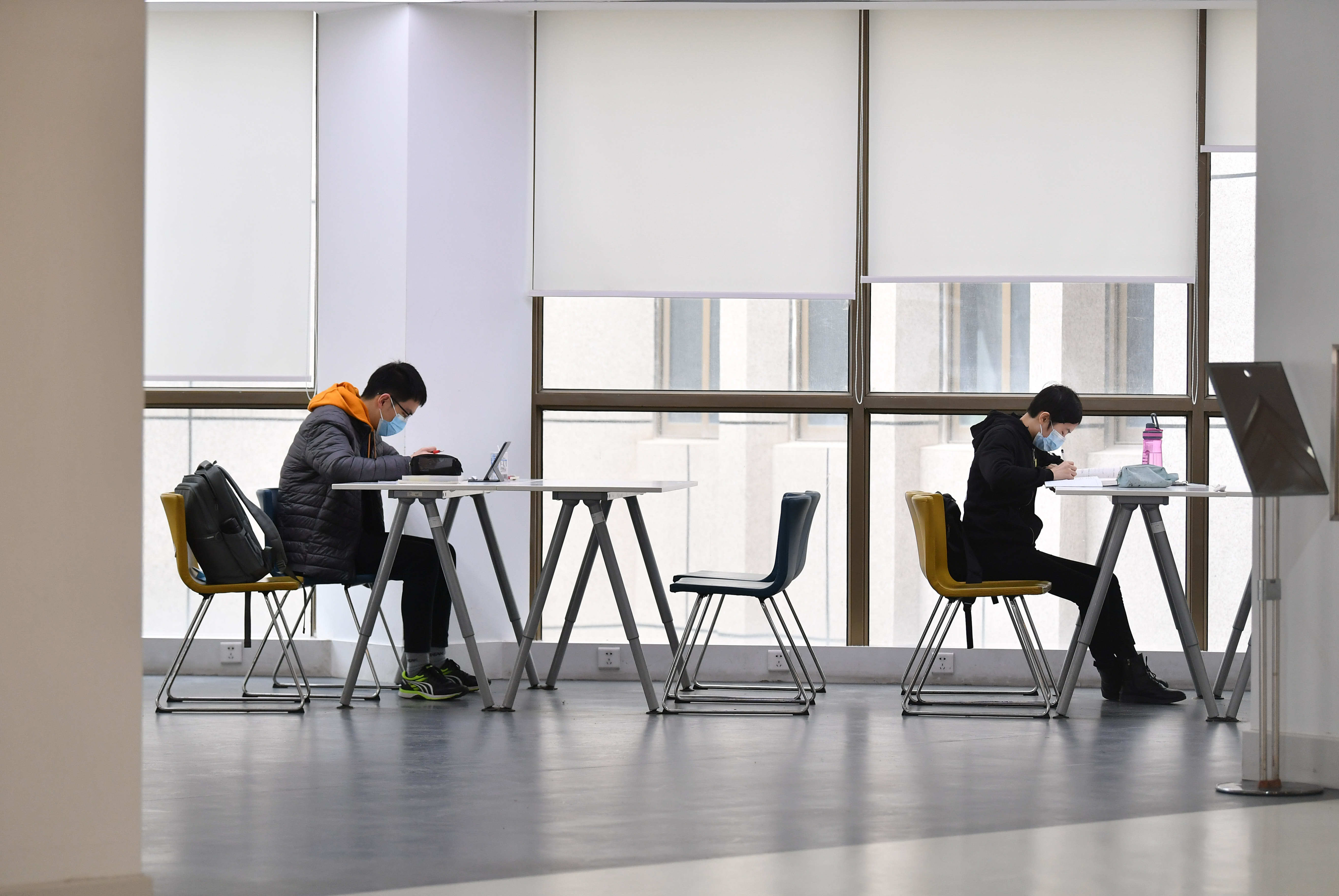 1月29日,留校學生在西安交通大學興慶校區(qū)圖書館自習。新華社發(fā)(王澤宇 攝)