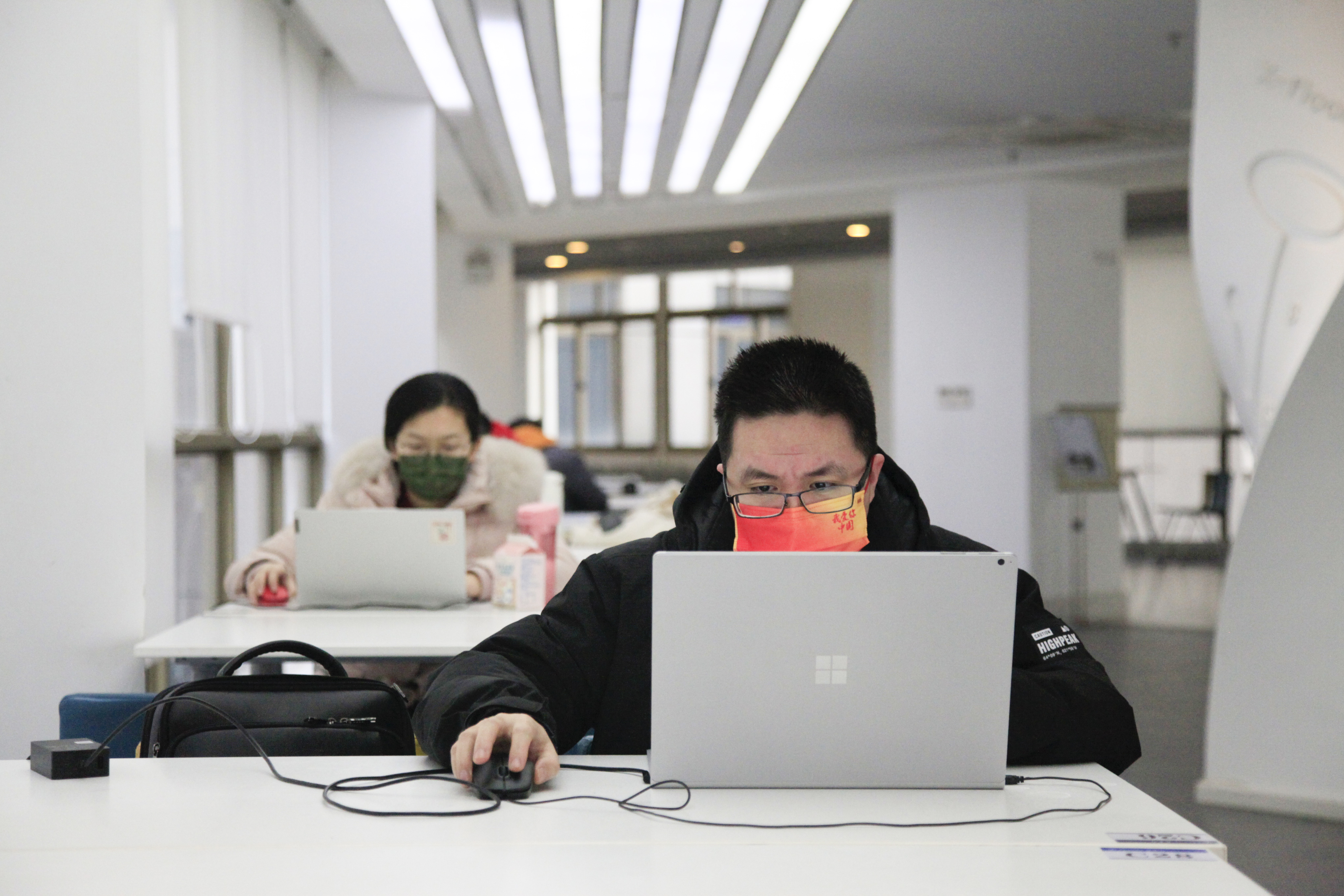 1月29日,留校學生在西安交通大學興慶校區(qū)圖書館自習。