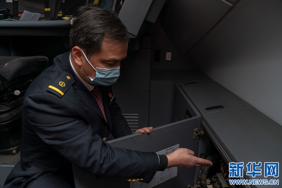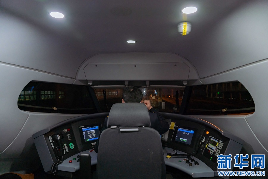 蘇盛正在駕駛列車。新華網(wǎng)發(fā) 趙磊 攝