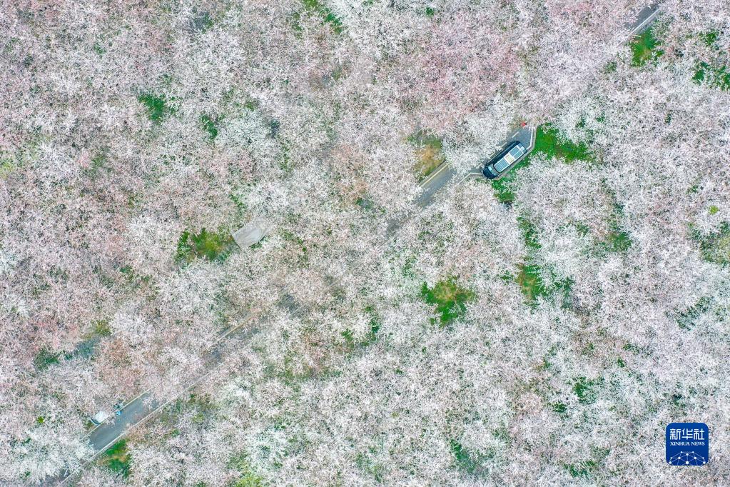 這是3月17日拍攝的貴安新區(qū)櫻花園(無人機(jī)照片)。新華社記者 歐東衢 攝