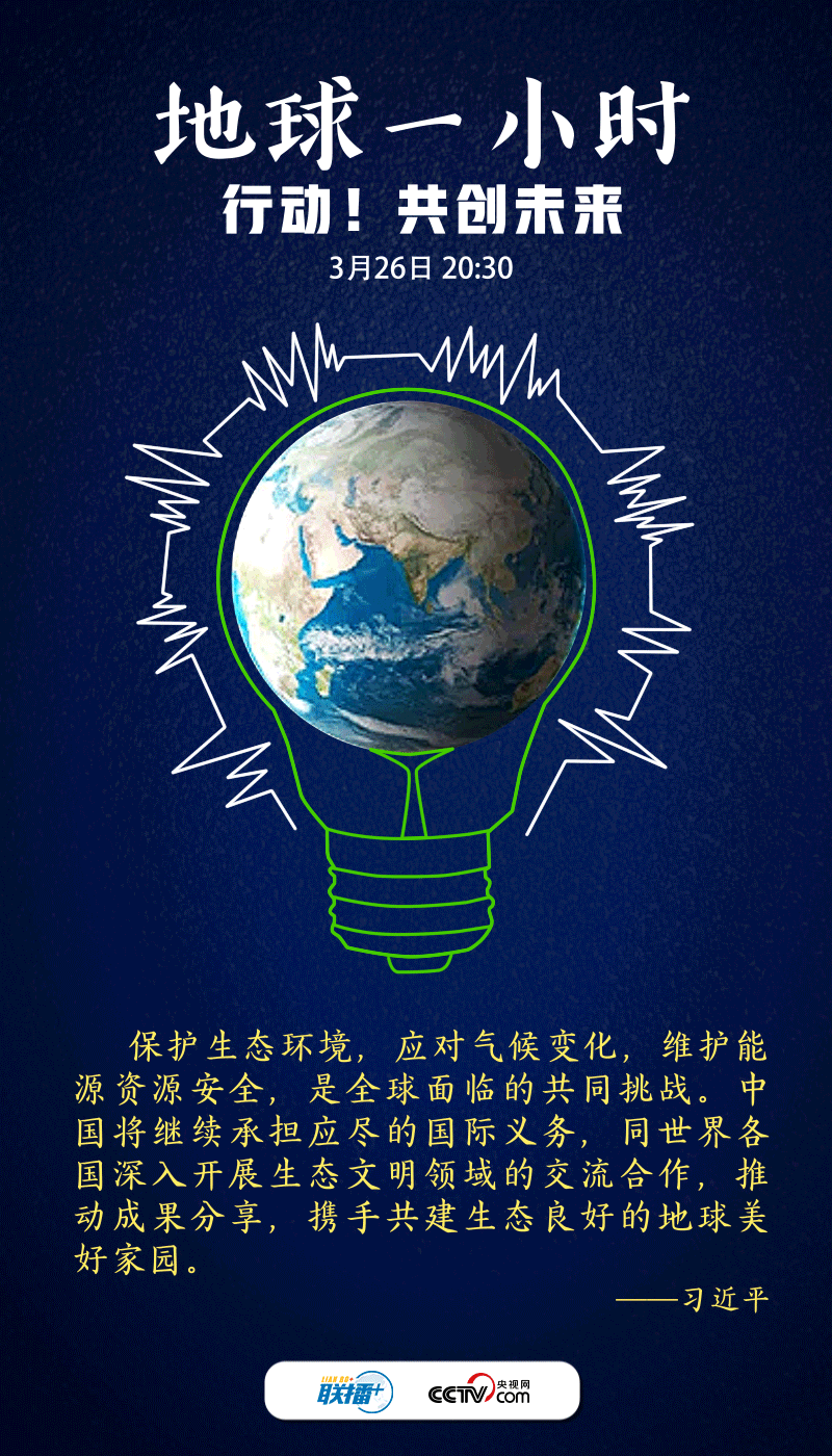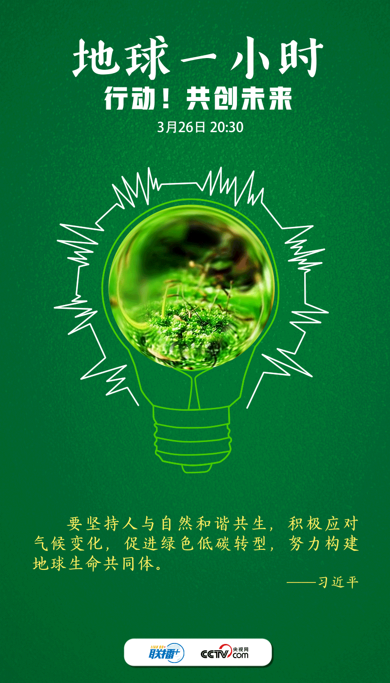 聯(lián)播+2022年3月26日是“地球一小時”活動日。今年的主題是“行動!共創(chuàng)未來”,呼吁世界各國在2030年之前,就自然保護、氣候變化和可持續(xù)發(fā)展等達成全球合作,讓自然向好,讓人類受益。