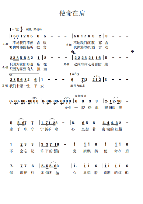 慶祝建黨百年獲獎歌曲作品選集——《使命在肩》詞曲。