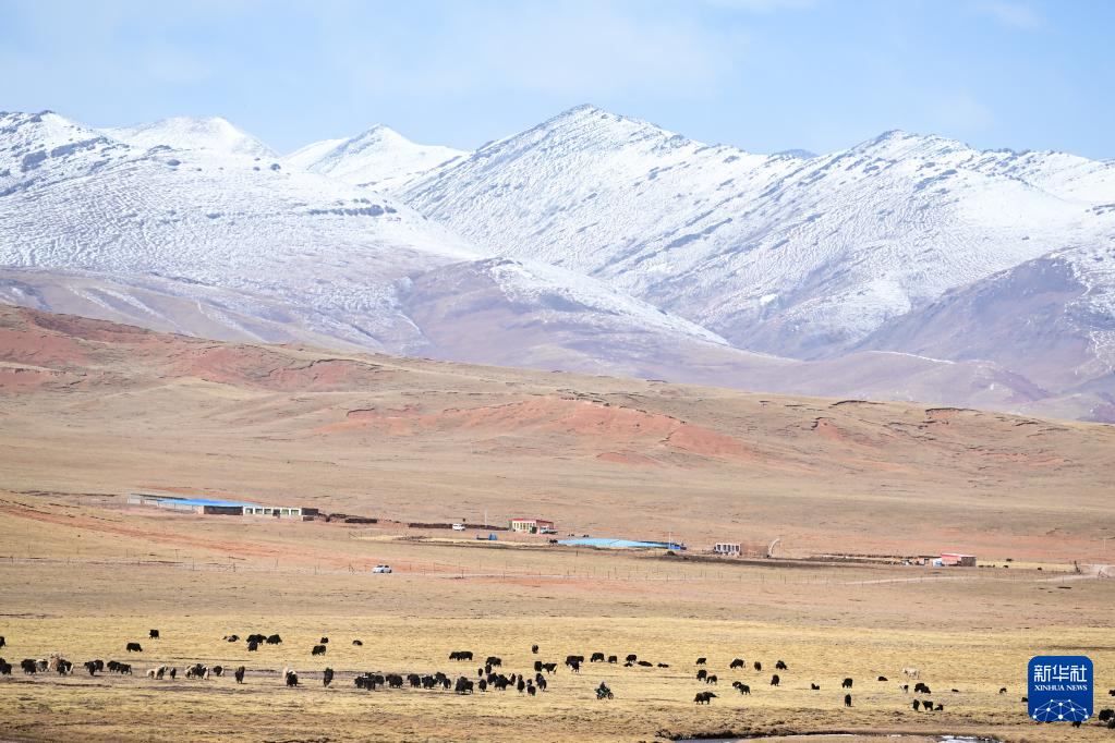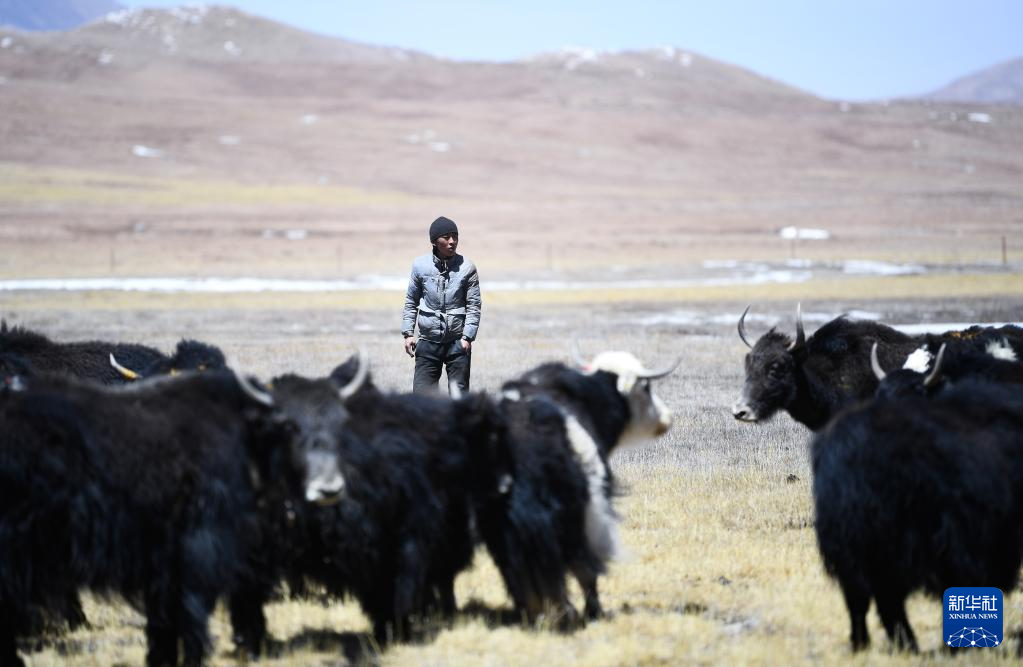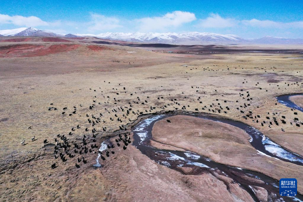 4月20日,在青海省玉樹(shù)藏族自治州曲麻萊縣,牧民在放牧。