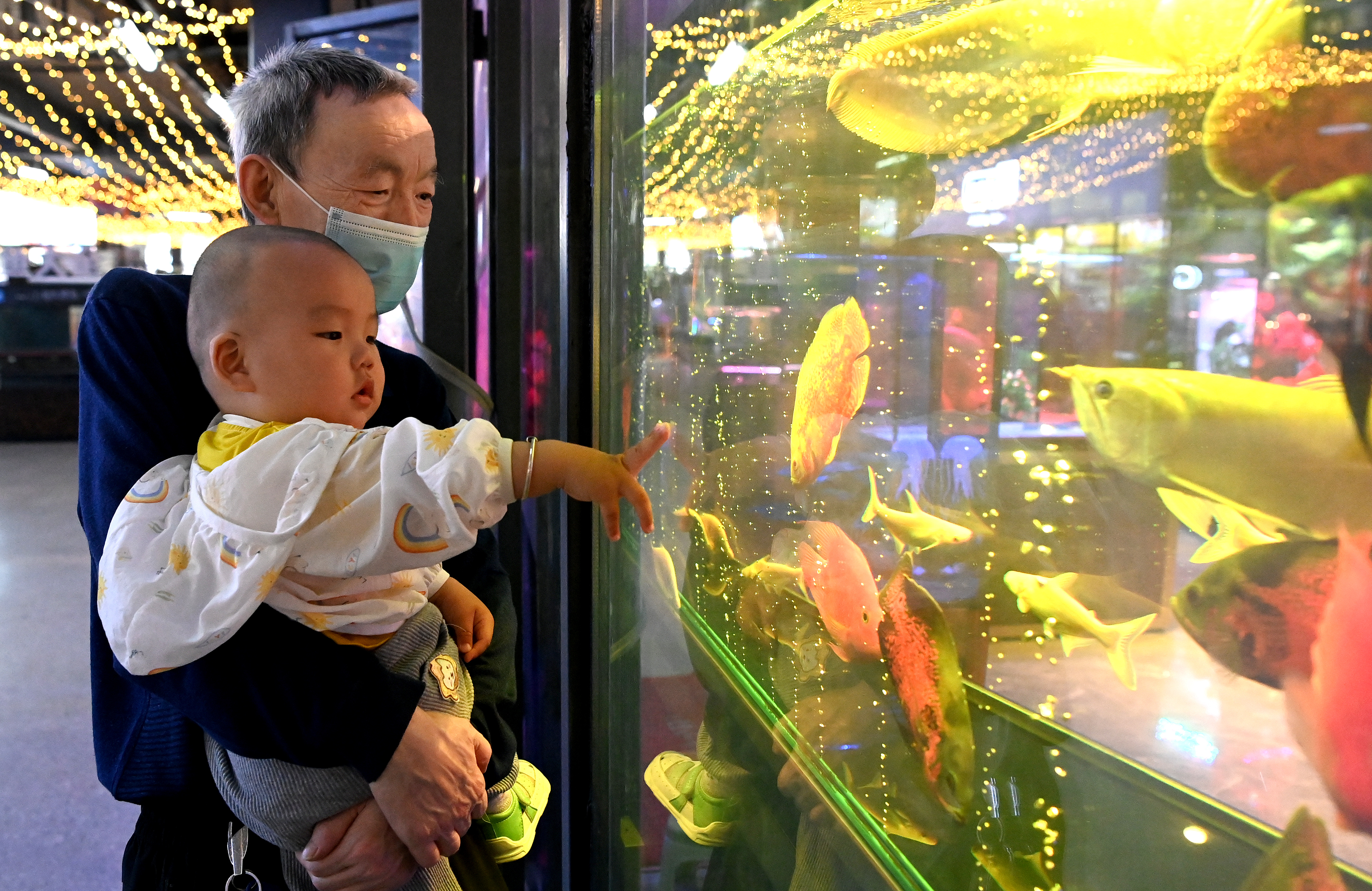 市民在西安際華3511文創(chuàng)科技園內(nèi)的魚市觀賞游玩(5月20日攝)。