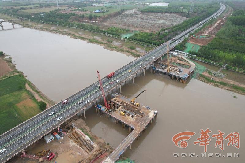 5月29日,在京昆改擴(kuò)建項(xiàng)目六標(biāo)段港務(wù)區(qū)大橋施工現(xiàn)場(chǎng),可以看到此處正準(zhǔn)備架設(shè)橋梁。一邊是繼續(xù)通行的京昆高速,一邊是繁忙的建設(shè)工地,“這里是路基改橋施工,橋?qū)牡胤降缆飞戏娇邕^去。”京昆改擴(kuò)建項(xiàng)目六標(biāo)段常務(wù)副總工余偉介紹,目前高速公路在地方道路紡渭路下面,完成后兩條路將倒換位置。