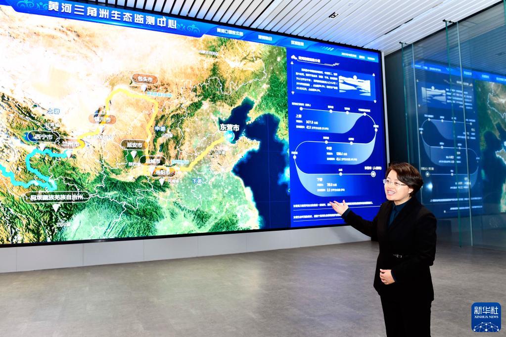 山東黃河三角洲國家級自然保護區(qū)生態(tài)監(jiān)測中心主任劉靜在介紹相關情況(2021年10月20日攝)。新華社記者郭緒雷攝