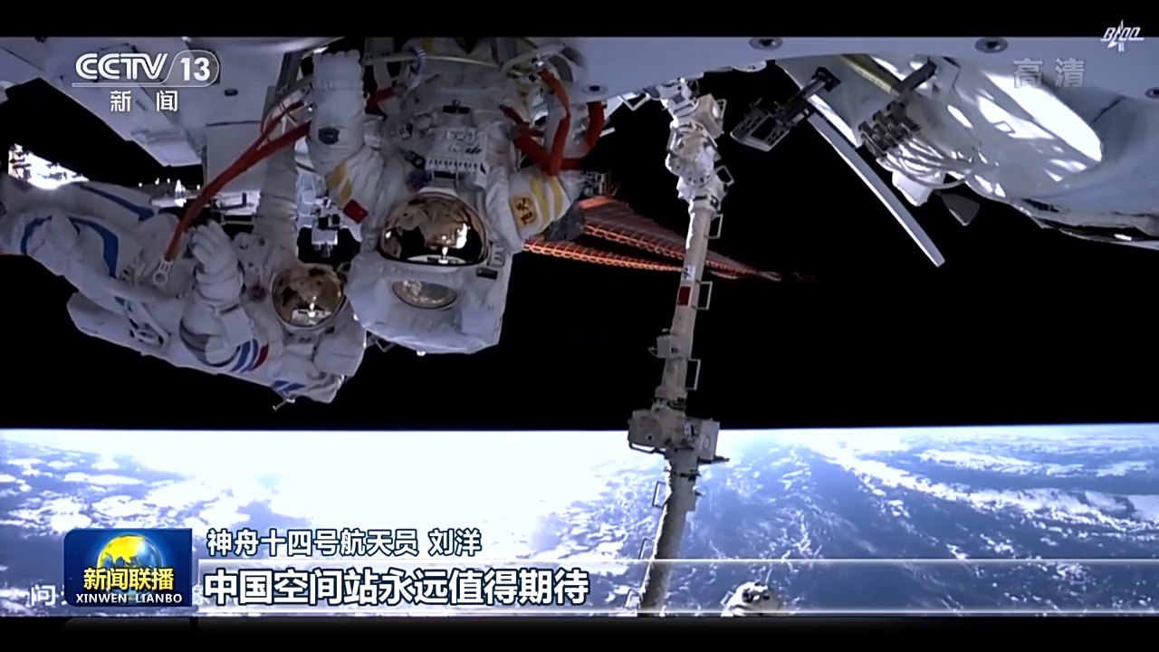 這是我國航天員剛剛完成的空間站第五次出艙。目前,由天和核心艙、問天實驗艙、神舟十四號、天舟四號組成的空間站組合體,正翱翔在距離地球400公里的太空。不久之后,夢天實驗艙也將到來,中國空間站即將全面建成。