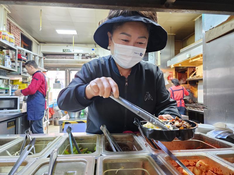 盡管9月23日參加韓國駐西安總領事館舉辦的韓國國慶日招待會很晚才回去,第二天一大早,文美卿仍如往常一樣來到自己在西安綠地中央廣場韓國風情街經營的明東碳烤韓國料理店。“最近我們剛開展外賣業(yè)務,我來幫著做一些餐食包裝和準備工作。”文美卿說。