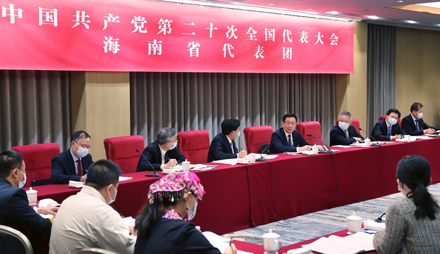 韓正參加黨的二十大海南省代表團(tuán)討論