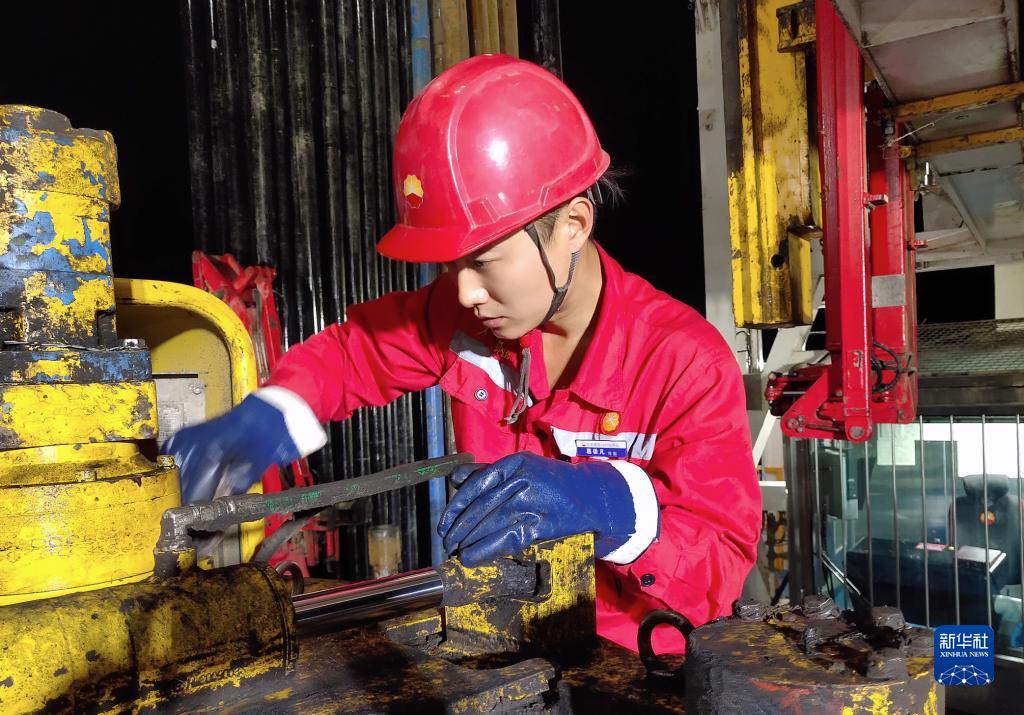10月17日,黑龍江大慶油田1205鉆井隊青年員工葛依凡在作業(yè)中。新華社發(fā)(段永堅 攝)