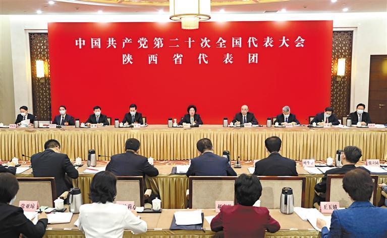 10月18日,黨的二十大陜西省代表團(tuán)召開會(huì)議,認(rèn)真討論十九屆中央紀(jì)委工作報(bào)告和黨章修正案。 記者 母家亮攝