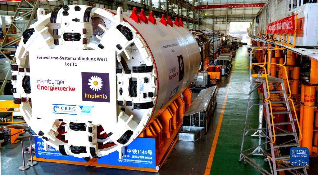 這是10月16日在河南鄭州拍攝的中鐵裝備首臺出口德國的盾構(gòu)機(jī)。新華社發(fā)