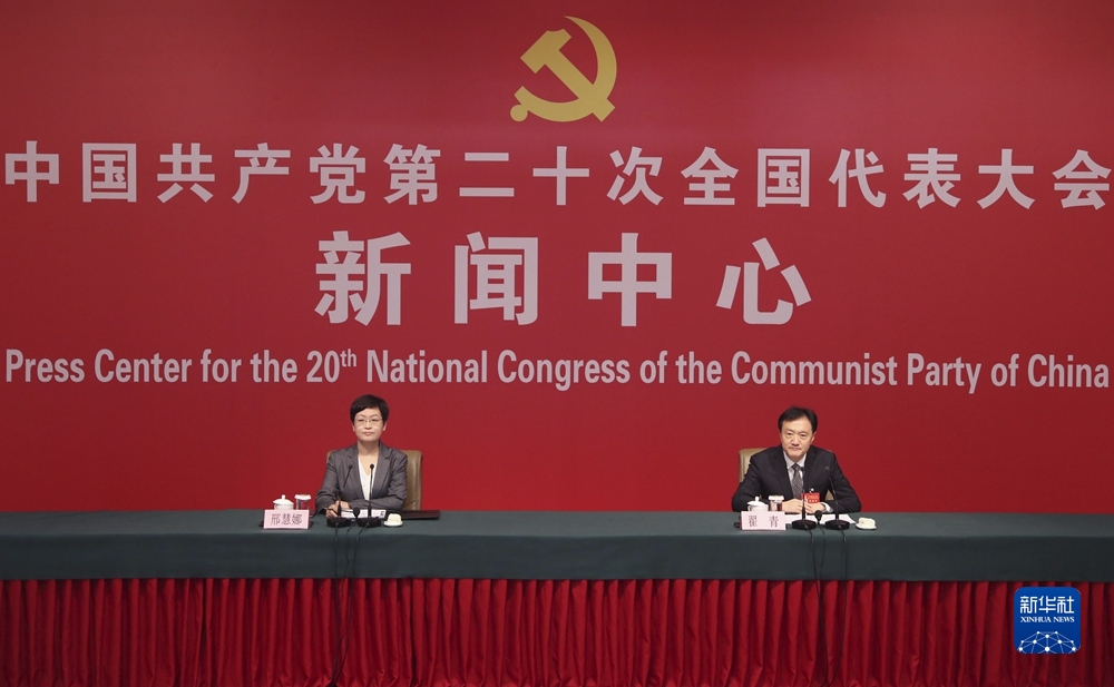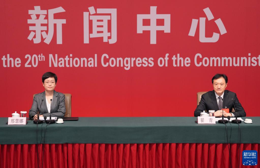 10月21日,中國(guó)共產(chǎn)黨第二十次全國(guó)代表大會(huì)新聞中心舉行記者招待會(huì)。生態(tài)環(huán)境部黨組成員、副部長(zhǎng)翟青圍繞“建設(shè)人與自然和諧共生的美麗中國(guó)”主題與記者交流。新華社記者 宋彥樺 攝