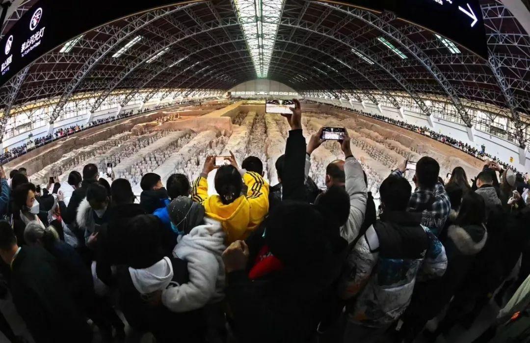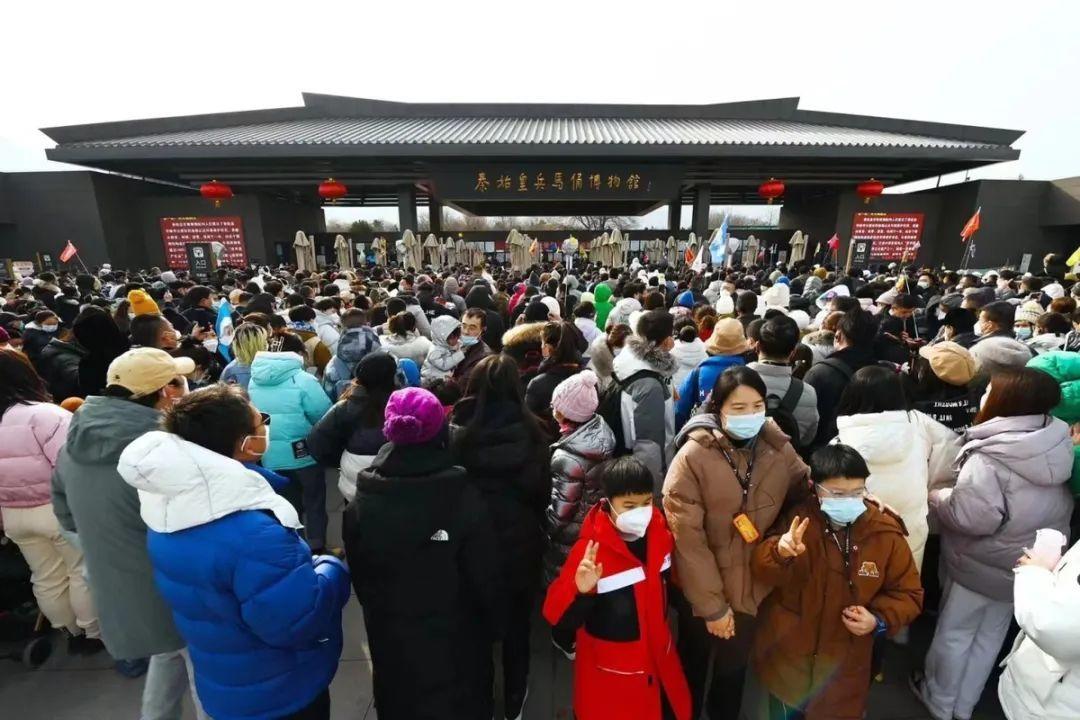 1月23日(大年初二),秦始皇帝陵博物院迎來了最大承載量,來自全國各地的觀眾參觀熱情高漲,該院內(nèi)外重現(xiàn)了久別的客流高峰。兵馬俑園區(qū)人山人海,熙熙攘攘,觀眾都在有序排隊(duì)進(jìn)行參觀。13時,秦始皇帝陵博物院已經(jīng)達(dá)到最大承載量,所有門票售罄,院方充分感受到了大家的熱情。