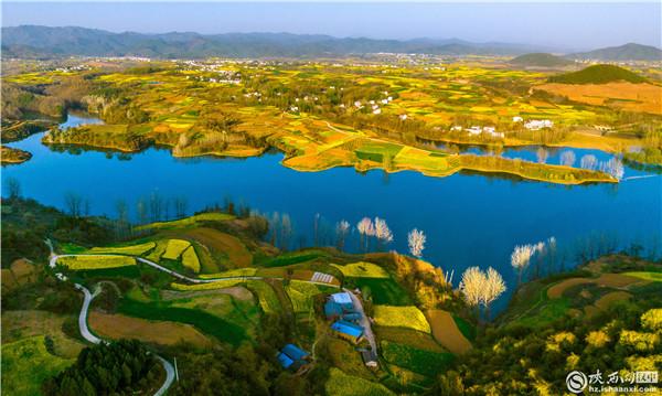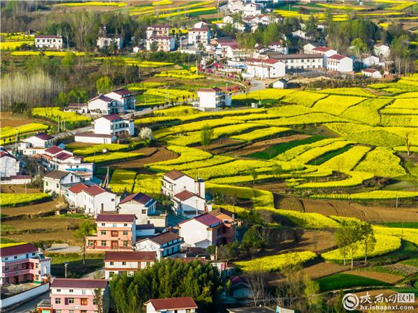 漢中:空中俯瞰油菜花海 春意盎然宛如畫(huà)卷