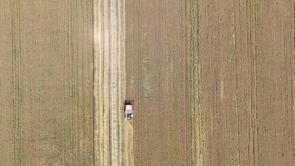 在邢臺經(jīng)濟開發(fā)區(qū),收割機在田間作業(yè)。新華社記者 鄒尚伯 攝