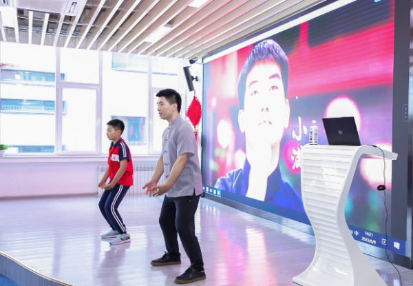作為示范活動,北京理工大學附屬實驗學校除了開展主題日活動,還開設了其他特色課程,舉辦中醫(yī)藥游園會,吸引眾多學生參與?;顒蝇F(xiàn)場,非遺傳承人代金剛手把手指導同學們練習八段錦。在中醫(yī)藥文化知識角,一名同學正跟著屏幕上的動作指引練習五禽戲。除了智能互動系統(tǒng),學校還專門布置中醫(yī)藥展覽、藥物標本、器具模型等,讓同學們時時感受多樣的中醫(yī)藥文化。