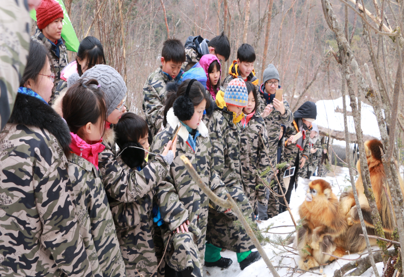 學(xué)生研學(xué)走進(jìn)神農(nóng)架國家公園大龍?zhí)督鸾z猴基地(神農(nóng)架國家公園管理局供圖)