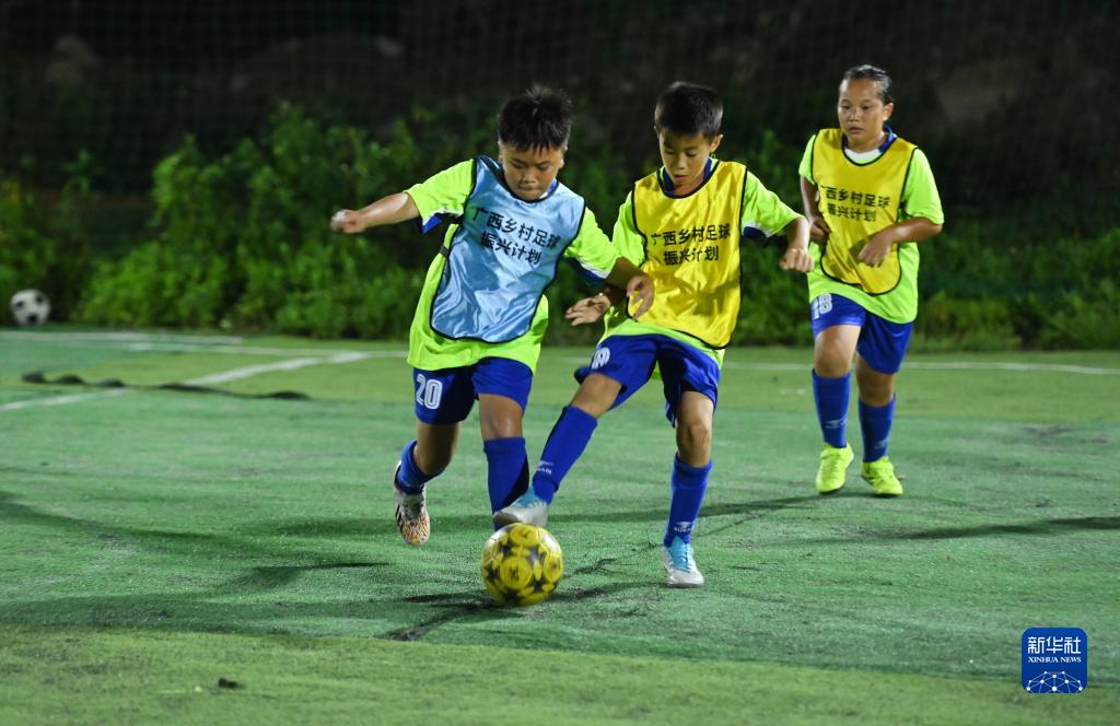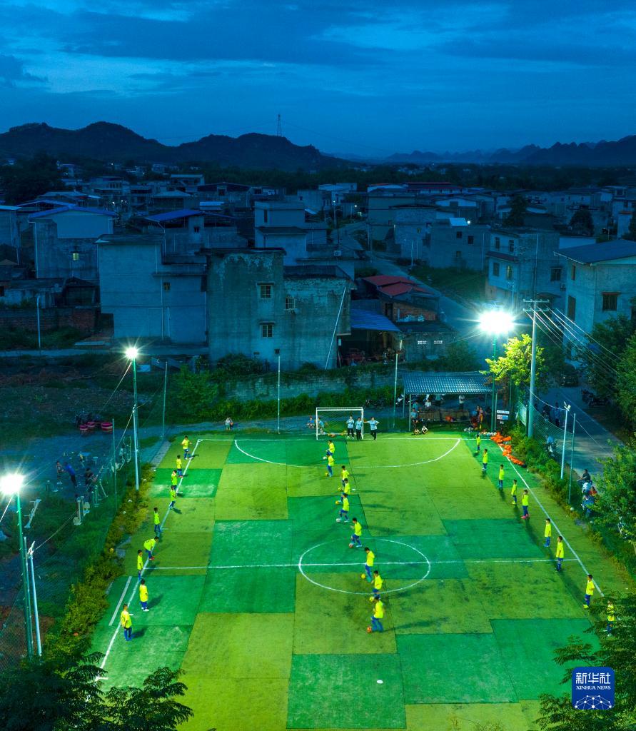 平地屯是位于廣西柳州市柳江區(qū)穿山鎮(zhèn)的一個小山村。8月7日晚,為期近1個月的平地屯暑期公益足球夏令營結(jié)束,一場匯報(bào)訓(xùn)練成果的足球?qū)官愒诖謇锏木G茵場上打響,吸引眾多村民觀賽。2020年,平地屯的村民組成義務(wù)勞動隊(duì),為孩子們修建專用足球場,社會愛心人士為他們捐贈了人工草坪、球門、球場照明燈等設(shè)施,公益足球教練定期免費(fèi)為孩子們培訓(xùn),眾人聯(lián)合起來,給村里喜歡足球的孩子們點(diǎn)燃了綠茵夢想。